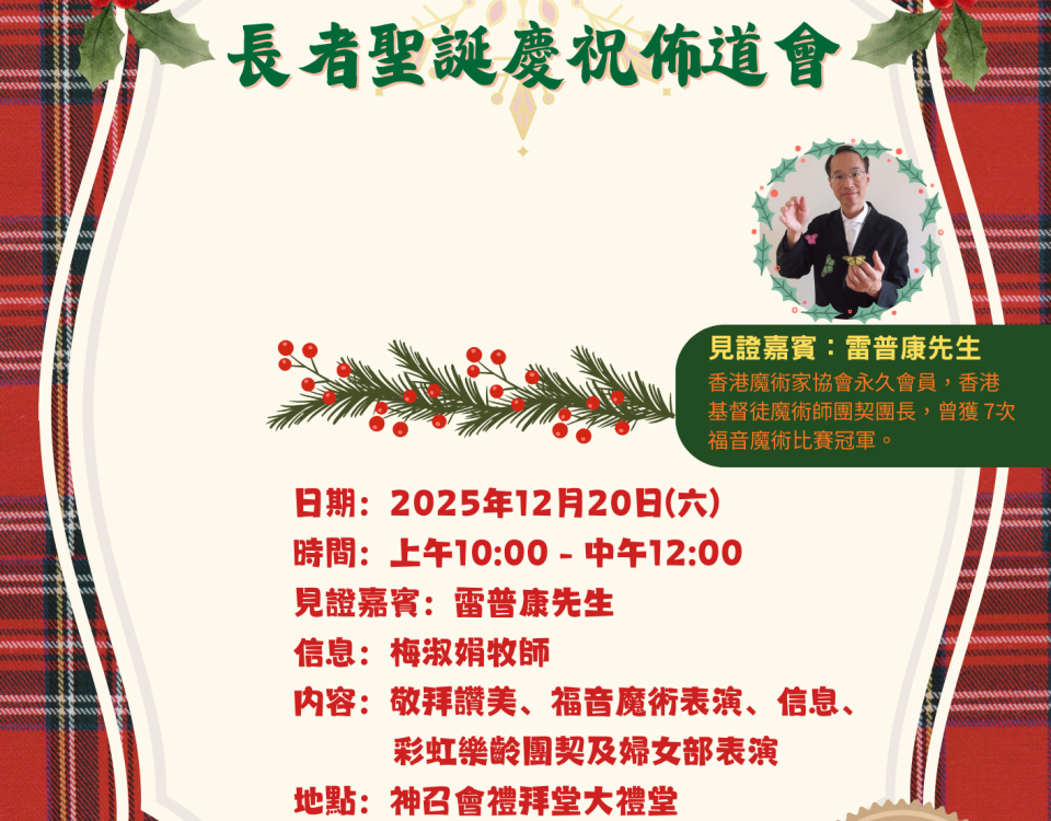 內容:敬拜、話劇、舞蹈、見證、信息及愛筵。