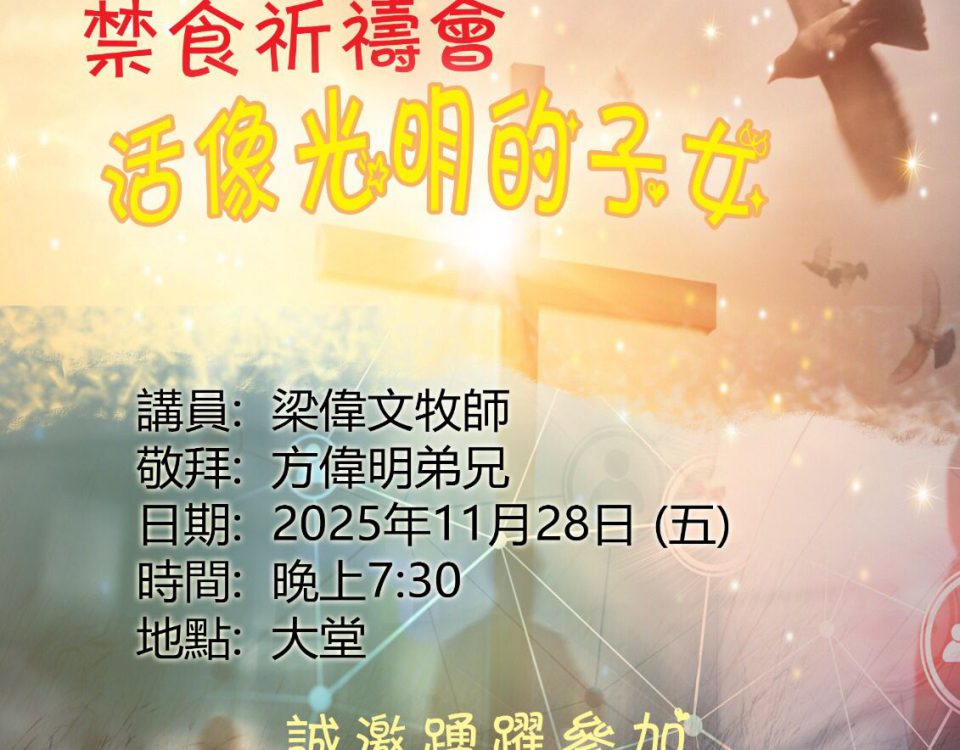 本週三晚的祈禱會,我們將以「為穆斯林歸主」為主題,同心禱告。您知道嗎?香港有數十萬名穆斯林群體,包括許多我們身邊的印尼姐姐和華人穆斯林等。這不僅是遠方的呼聲,更是神放在我們眼前的使命!透過使徒行傳一章8節經文,我們將思想如何從本地到「撒瑪利亞」,跨越文化隔閡,見證基督。聚會中將分享穆斯林信仰與耶穌基督福音的差異,並一起為他們的心歸向真理、為基督徒勇敢分享信仰而禱告。