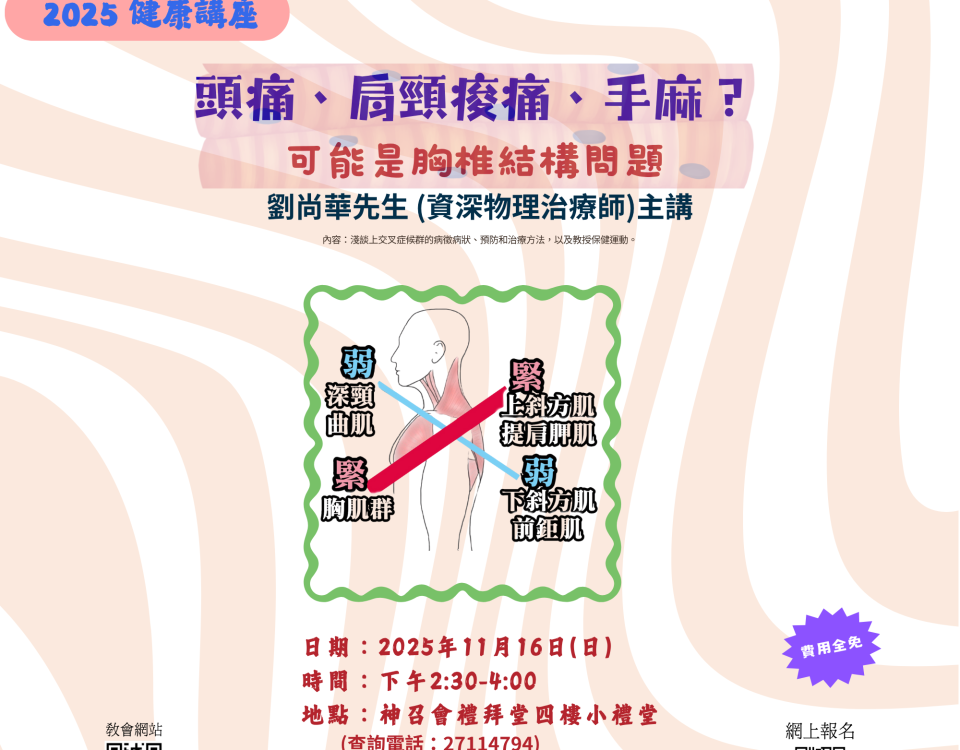 「頭痛、肩頸痠痛、手麻?可能是胸椎結構問題 」健康講座